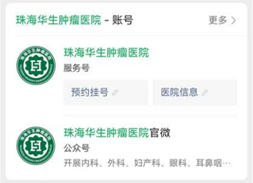 微信搜索“珠海华生肿瘤医院”,点击“关注服务号”。点击“就医服务”→“预约挂号”→选择科室→选择医生